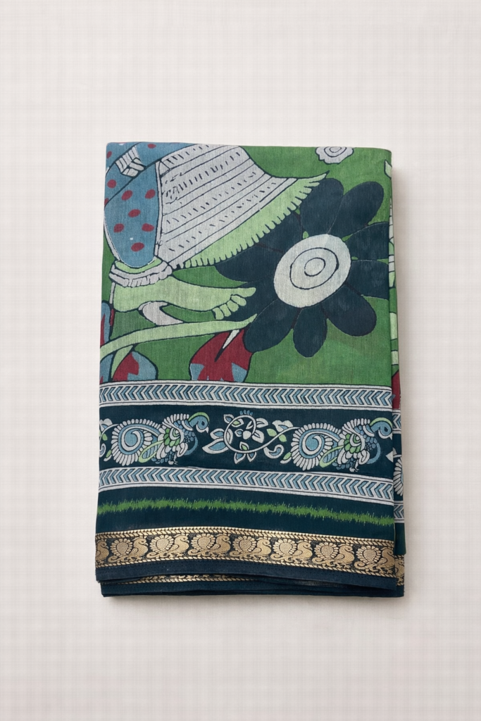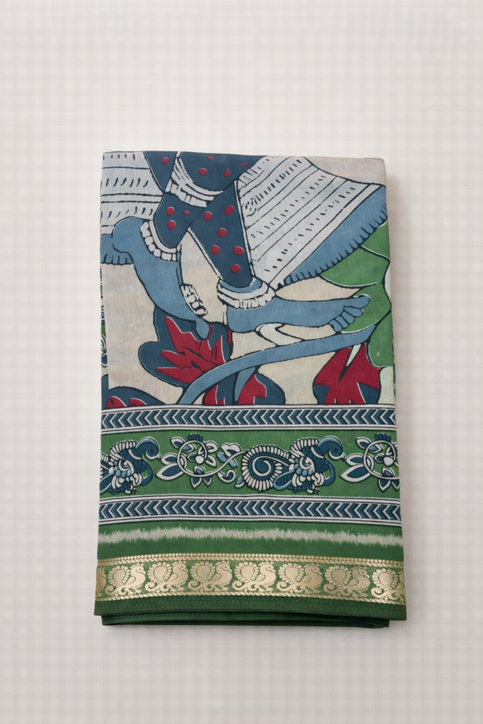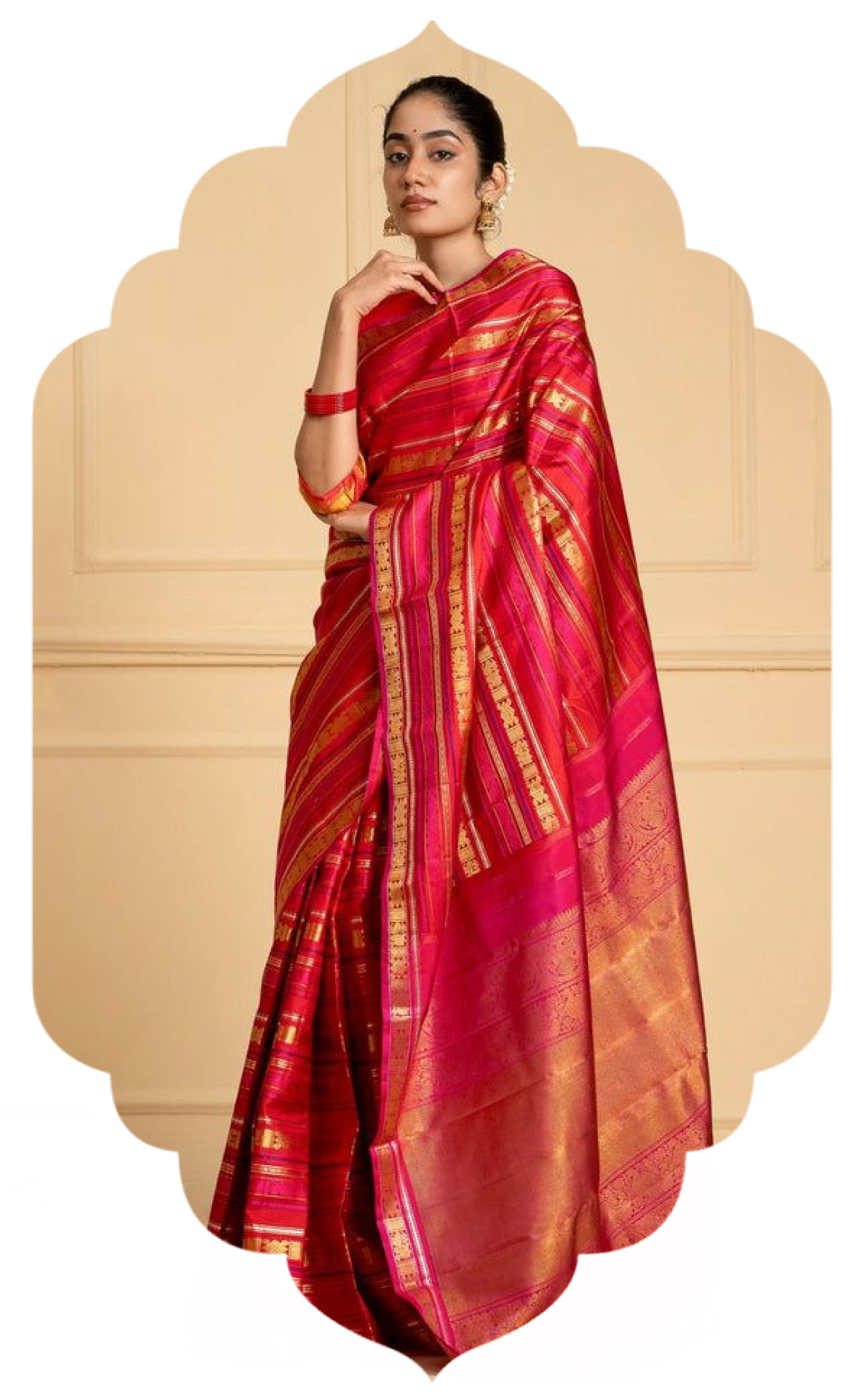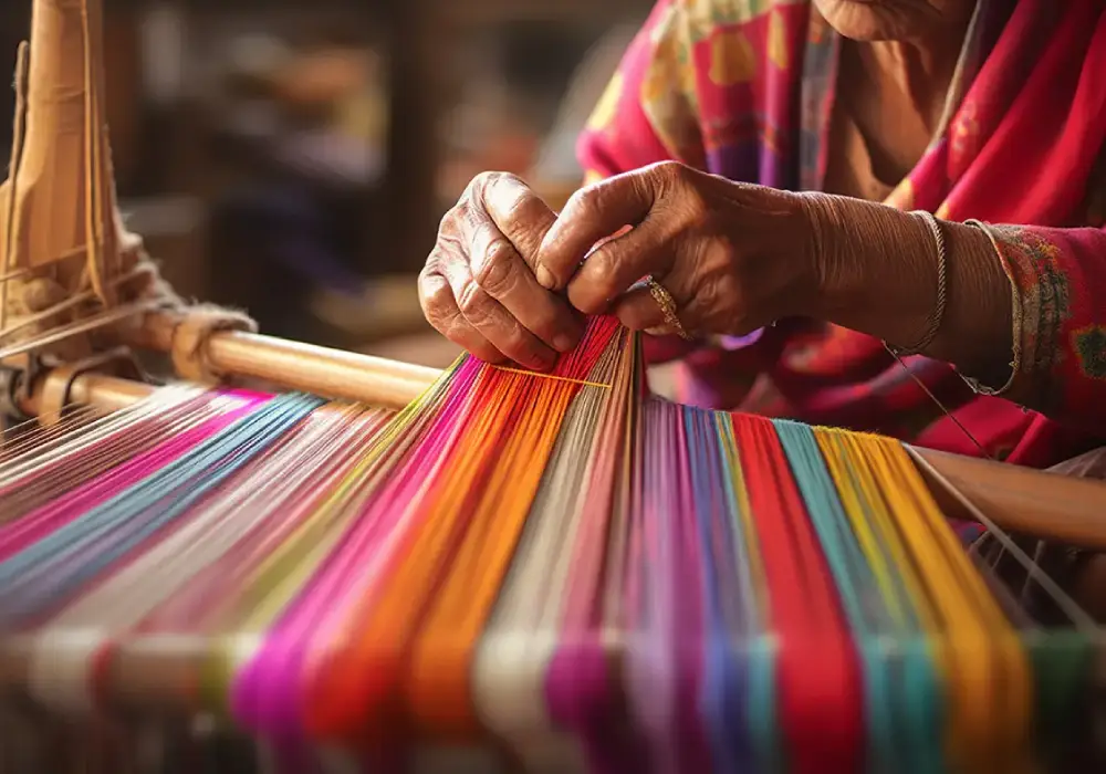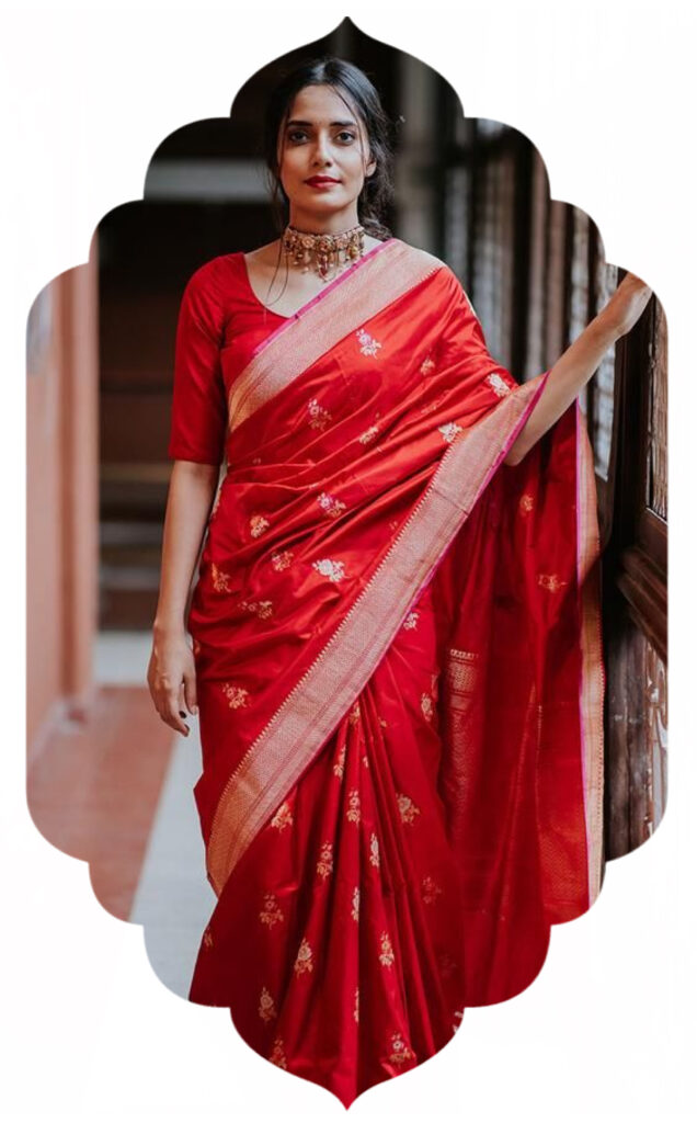 Our sarees are handwoven on traditional looms, offering natural fibres, elegant drape, and timeless texture.