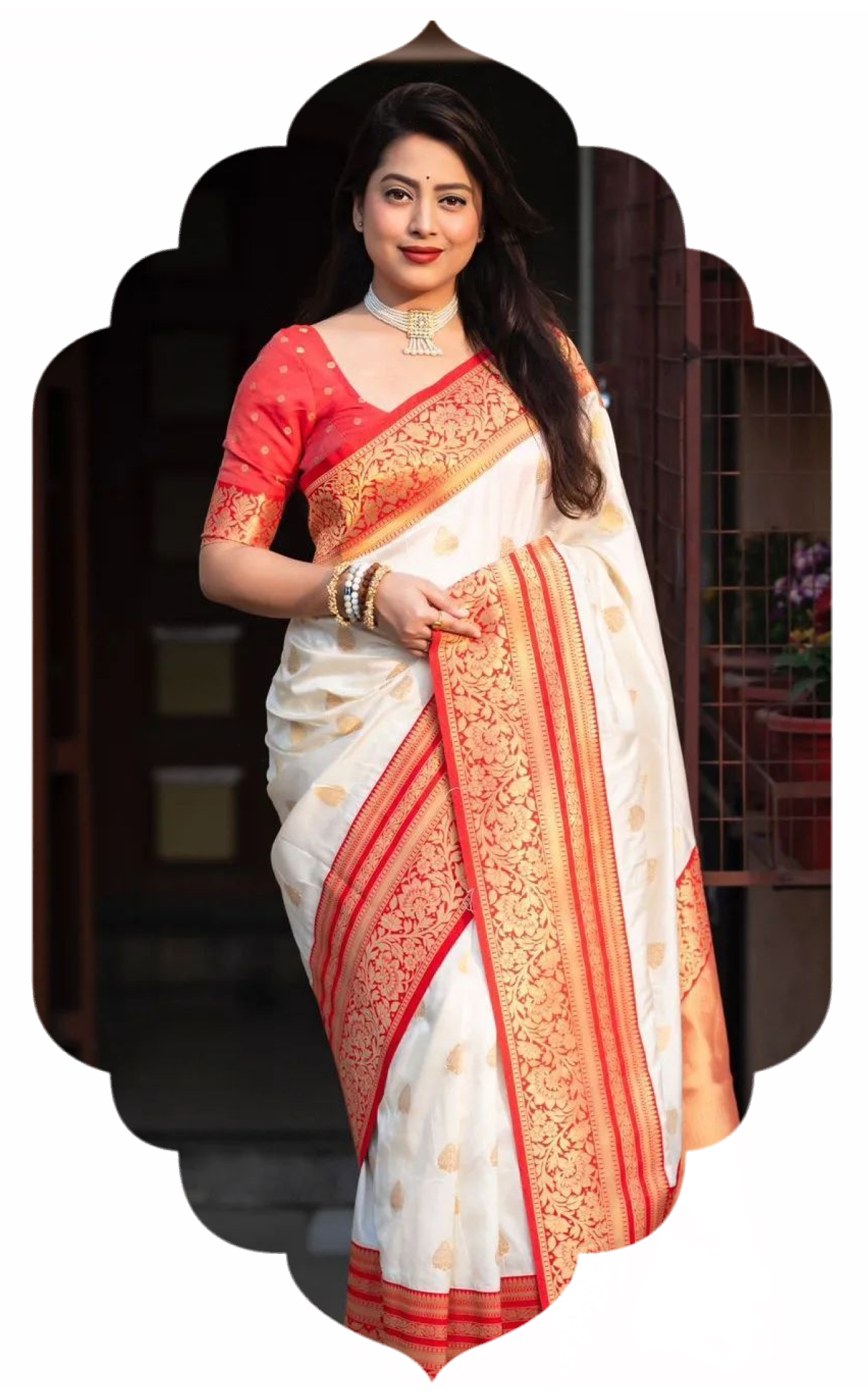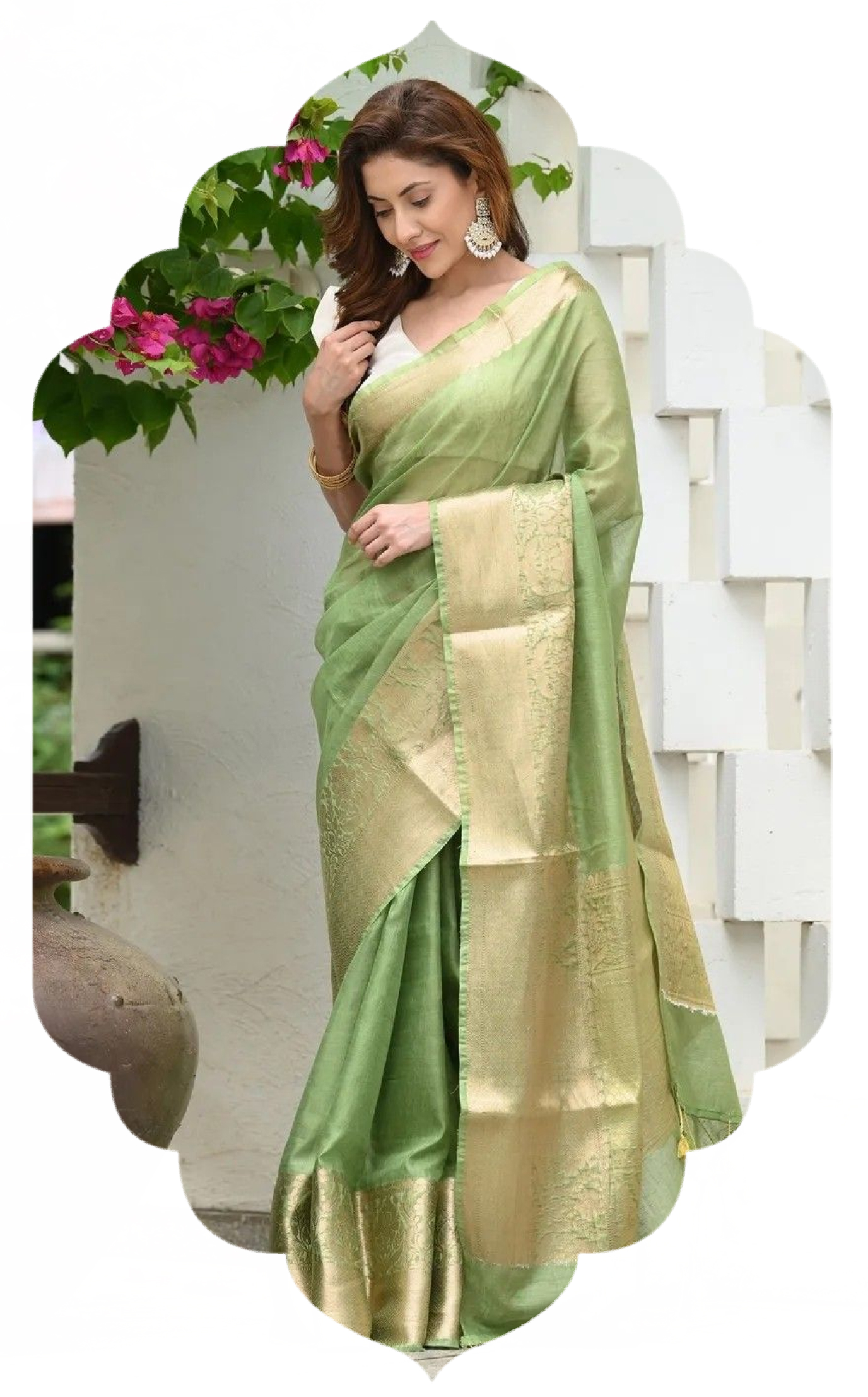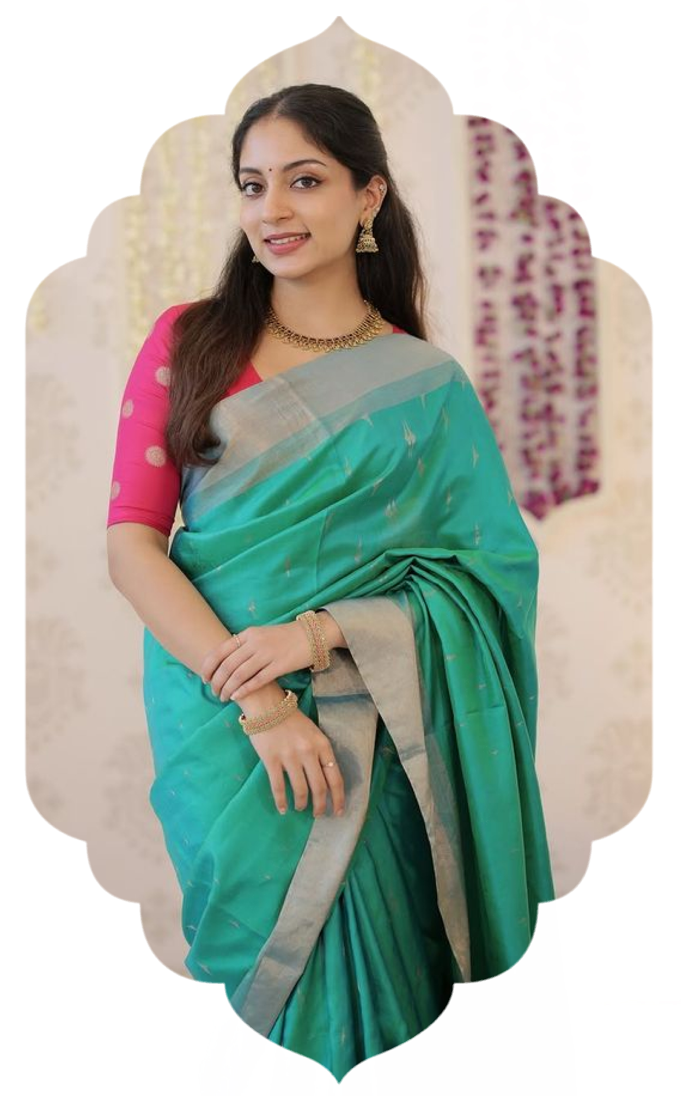 Our sarees are handwoven on traditional looms, offering natural fibres, elegant drape, and timeless texture.