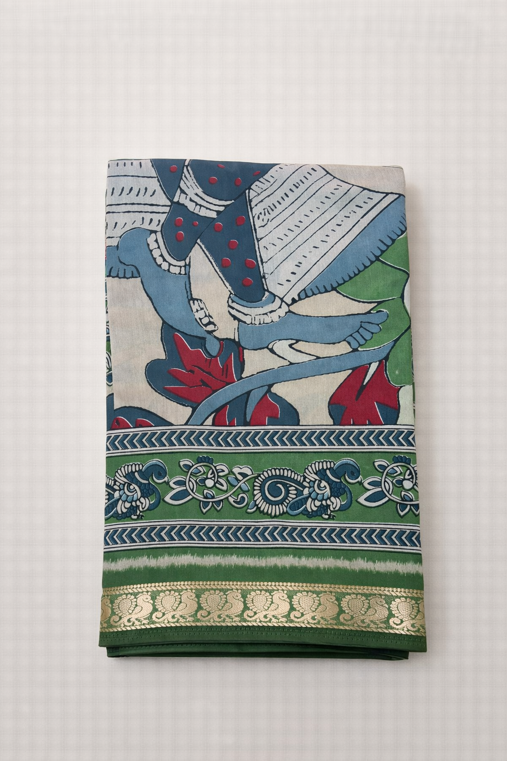 TMS25058 – Green artistic printed Maheshwari silk cotton saree